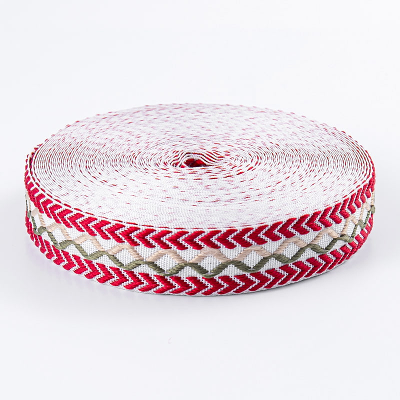 این تار ژاکارد دو طرفه با عرض 2.5 سانتی متر دارای یک الگوی ژاکارد دو طرفه است که الگوهای نفیس را در هر دو طرف به نمایش می گذارد. از زیبایی بصری و مهارت فوق العاده ای برخوردار است. ساخته شده از نخ توری درجه یک و ترکیب با تکنولوژی پیشرفته ژاکارد، زیبایی شناسی را با عملکرد ترکیب می کند و آن را برای ملافه های با کیفیت بالا، دکوراسیون منزل و محصولات سفارشی مناسب می کند.
